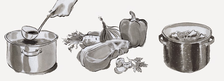 At exactly the same time that my husband was limping around waiting for a knee replacement operation earlier this year, I was serendipitously commissioned to illustrate a book called “Nourishing Broth” by Sally Fallon Morell, “the definitive cookbook that can help you treat symptoms of autoimmune disorders, infectious diseases, digestive problems and other chronic ailments”.